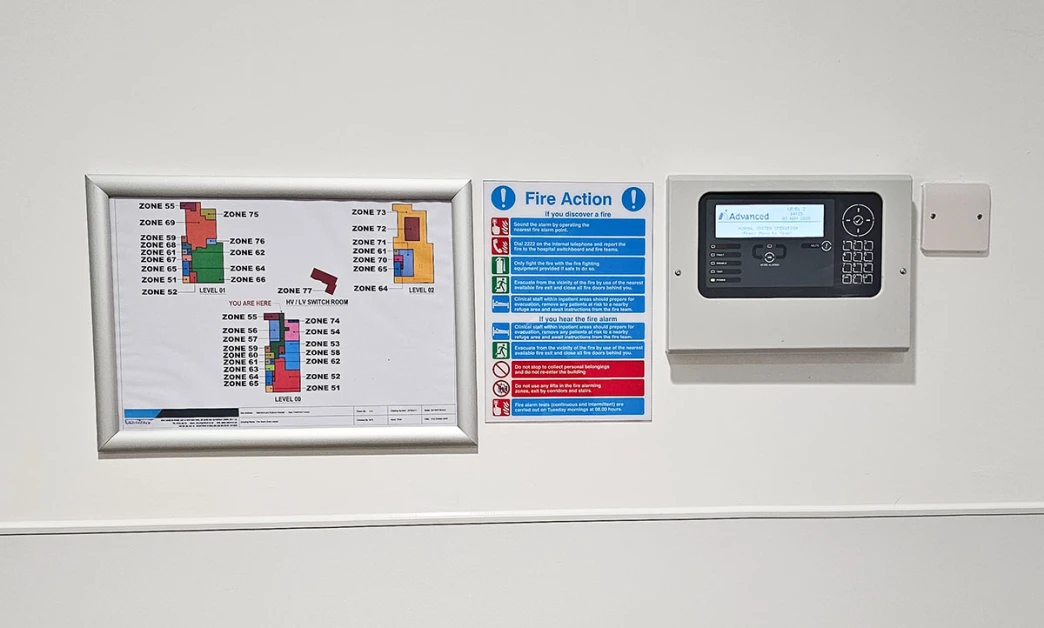 Zone plans are normally positioned next to the fire alarm control panel so that anyone responding to an alarm can quickly check the layout. Guidance on zone plans is included in BS 5839-1 Fire Detection and Fire Alarm Systems Standard, which highlights the importance of providing clear information to system users.
