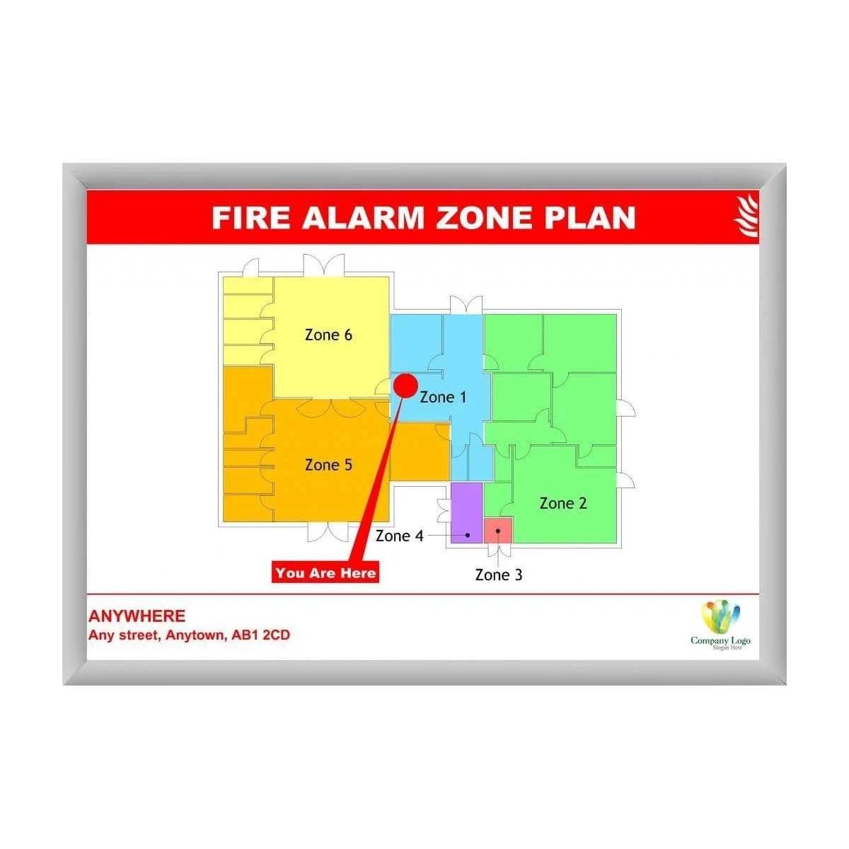 The whole purpose of a zone plan is to help someone quickly identify which area of the building is affected. Zones should be clearly marked and labelled so there is no confusion.