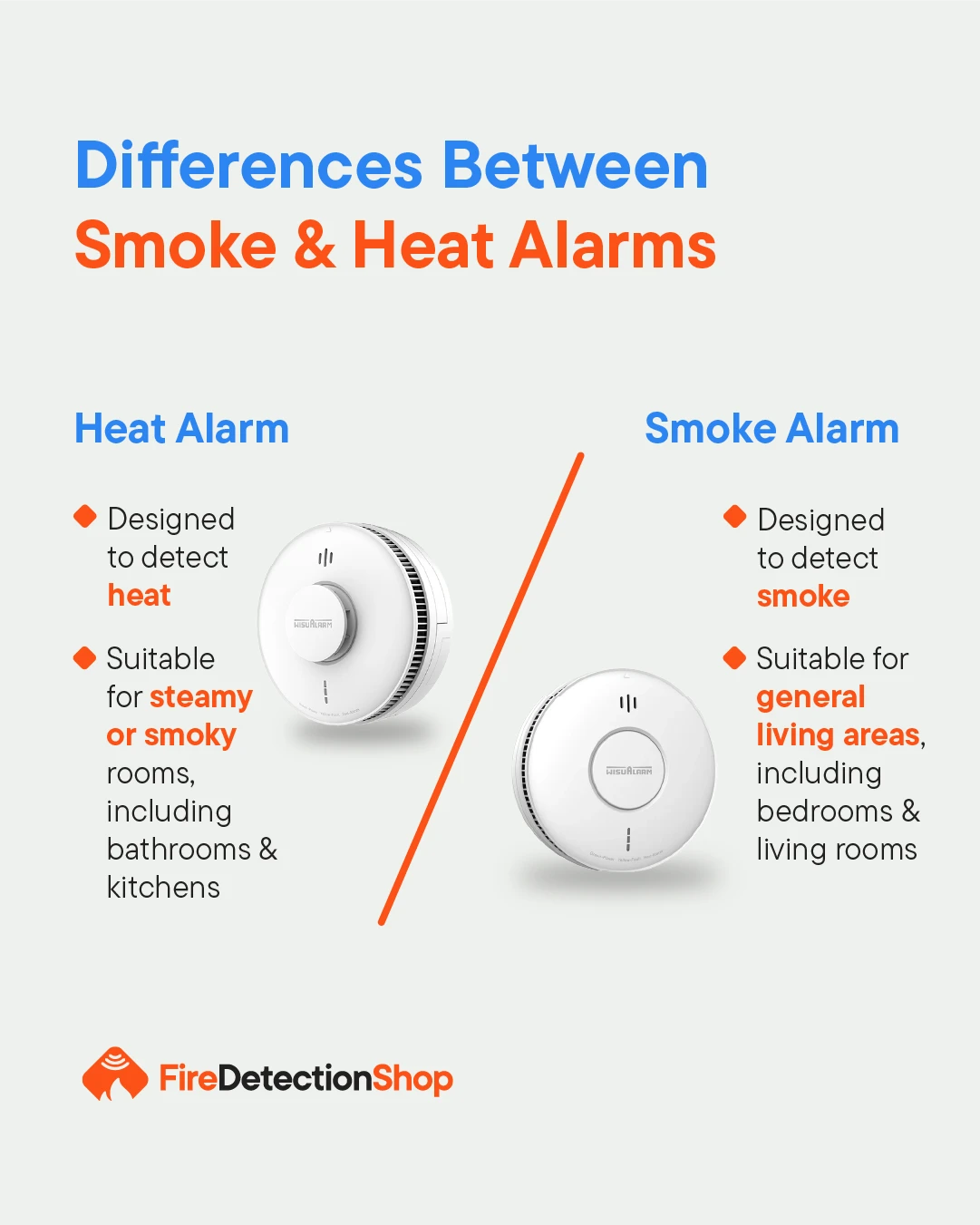 Pairing smoke alarms in living spaces with heat alarms in kitchens or utility rooms gives much more reliable coverage.