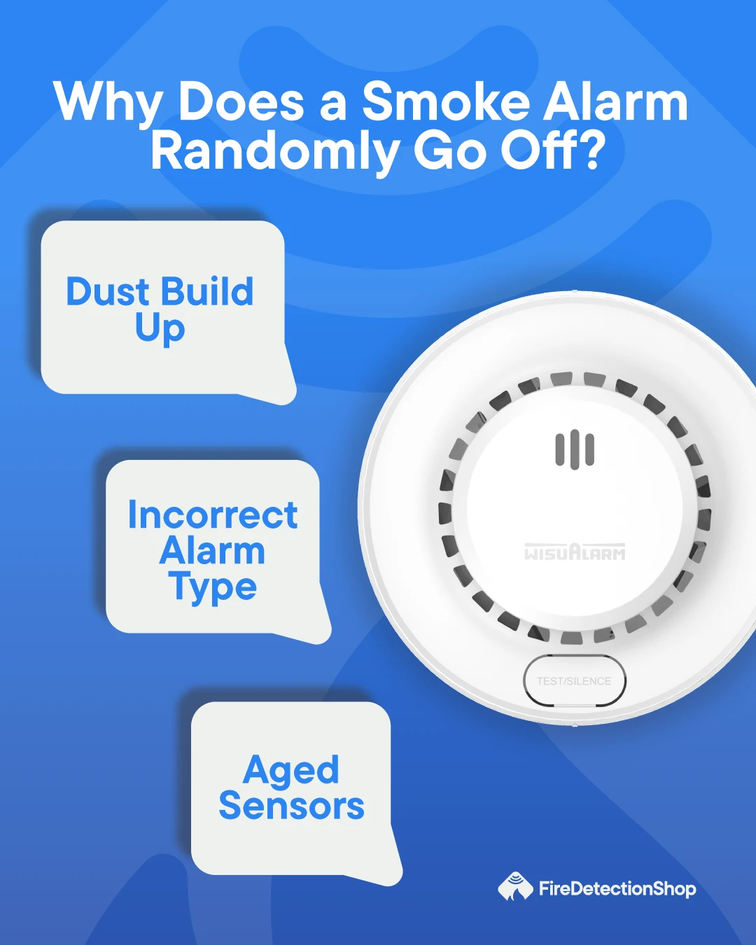 Smoke alarms can chirp or trigger false alarms due to dust, insects, steam, incorrect placement or ageing sensors. Using the correct type of alarm for each room and carrying out simple maintenance like vacuuming can help reduce false activations. If your smoke alarm is over six years old and continues to trigger randomly, it is likely time to replace it.